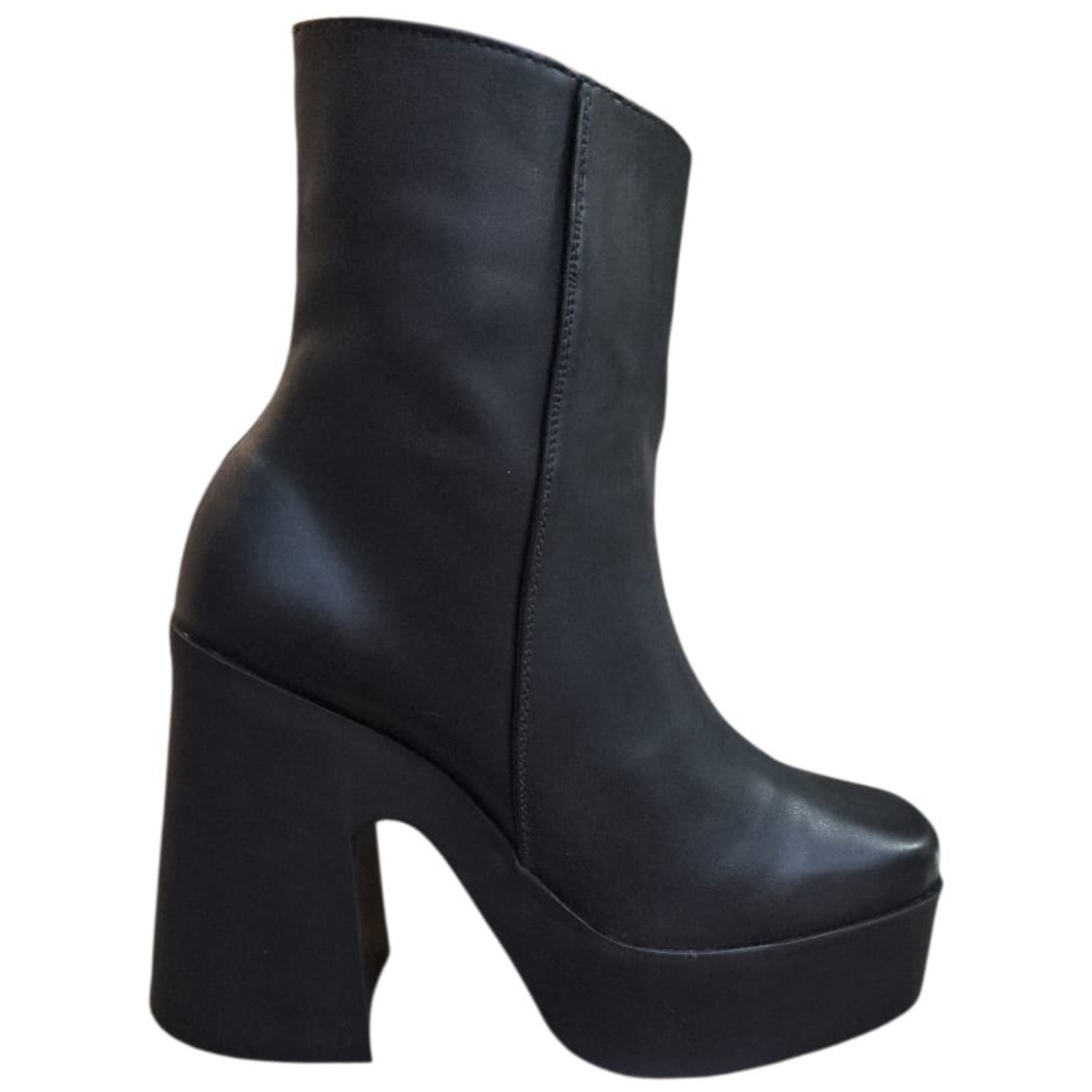Botín negro con plataforma y tacón grueso alto. Diseño elegante y versátil para looks de noche o casuales. Compra online en Colombia.