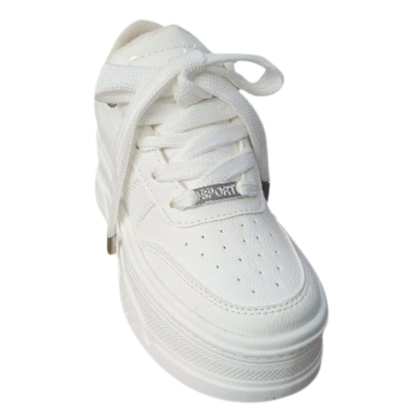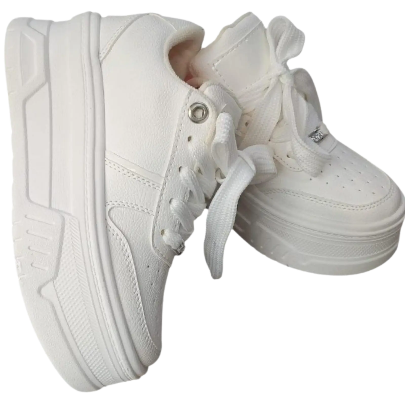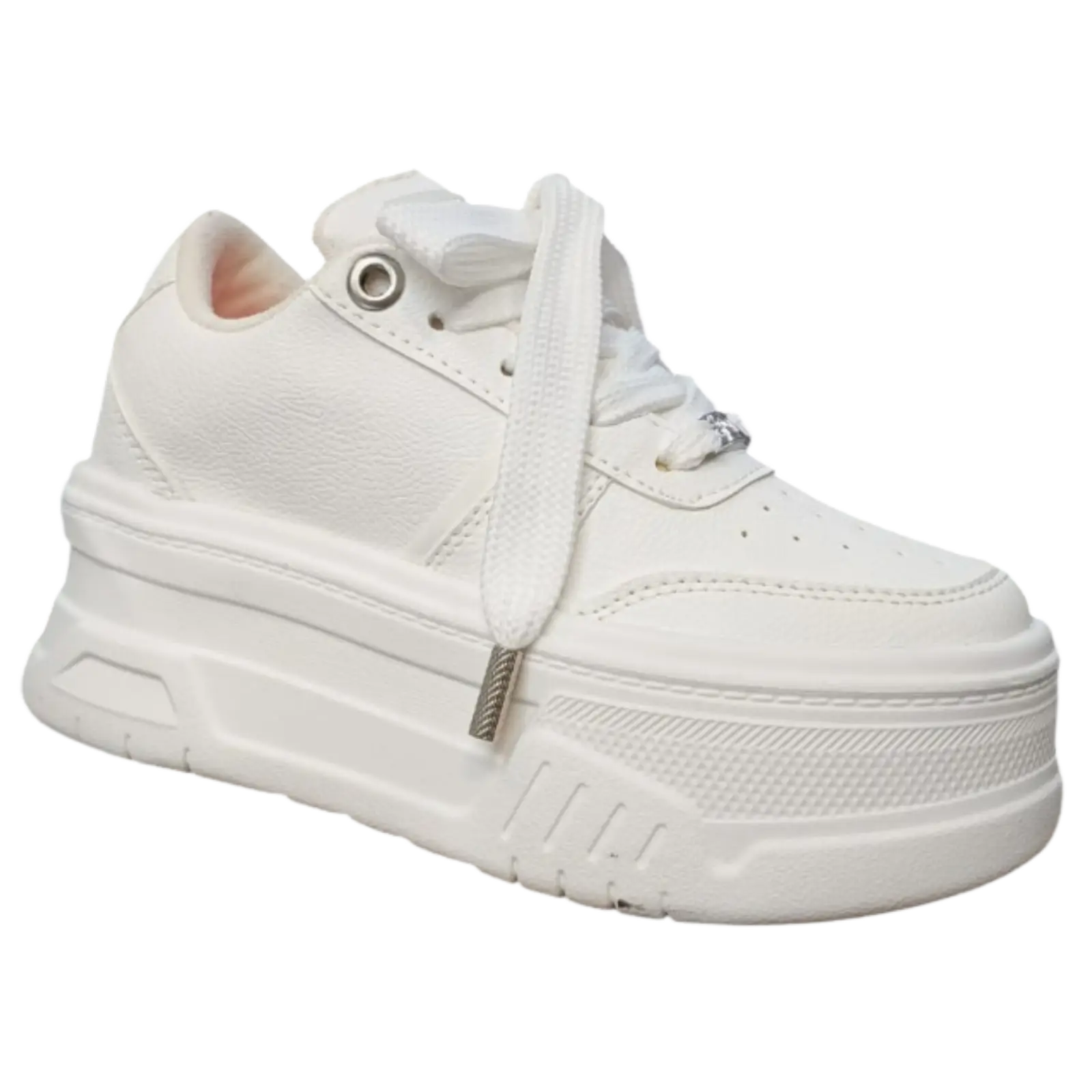 Este tenis blanco babylong cuenta con suela tipo plataforma que aporta altura sin sacrificar estabilidad. Los cordones gruesos y la estructura robusta le dan un look actual, perfecto para outfits casuales o street style.
